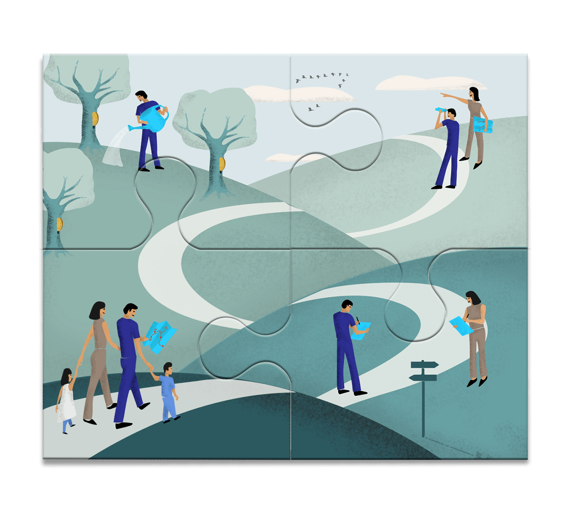 Utifrån våra fyra pusselbitar Portföljen, Känslorna, Finanserna och Familjen hjälper vi dig att rita en överskådlig bild av ditt finansiella läge. Därefter kan vi baserat på dina värderingar, drömmar och mål ta fram en genomarbetad holistisk affärsplan för hur du på bästa sätt når dessa. Under resans gång hjälper vi dig att disciplinerat hålla dig till planen, ta rationella beslut i såväl med- som motgång och känna trygghet. Vi gör det hela vägen till dina drömmar och ekonomisk frihet.